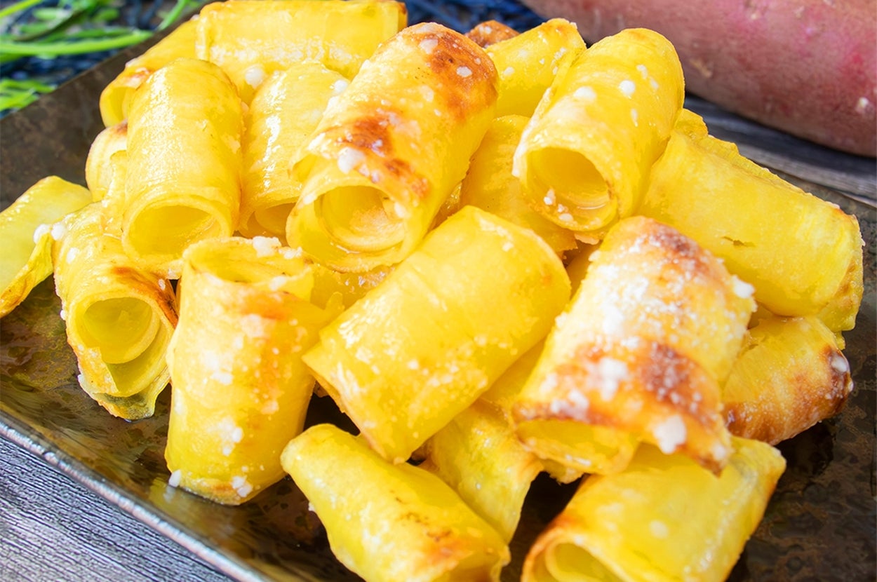 さつまいもで作る簡単おやつレシピをご紹介します!くるくると巻いてこんがりと揚げ焼きにし、仕上げにバターと粉砂糖と絡めたら最高のおやつの完成♪カリッとした食感と、バターの香り、程よい甘さでパクパク食べられちゃいますよ。材料も少なく、手軽に作れるのでパパッとおやつを準備したい時にも便利なレシピです。出来立てはもちろん、冷めてもおいしいのでたくさん作っておいてくださいね♪