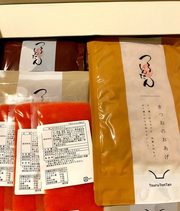 賞味期限は、きつねあげが製造日から30日、明太子が製造日から7日、ほかは製造日から45日です。