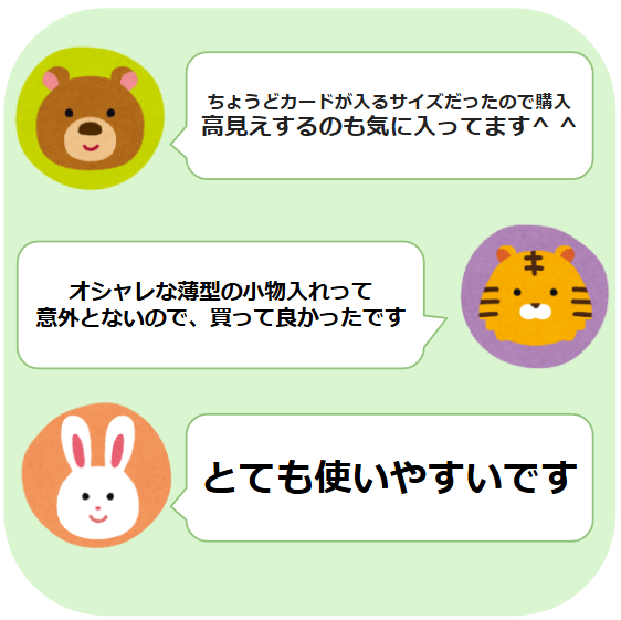 公式サイトの商品レビューには「ちょうどカードが入るサイズだったので購入。高見えするのも気に入ってます」「オシャレな薄型の小物入れって意外とないので、買って良かったです」「とても使いやすいです」など、高評価の声が寄せられていました。