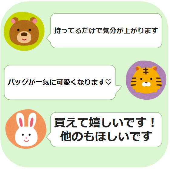 公式サイトの商品レビューには「持ってるだけで気分が上がります」「バッグが一気に可愛くなります♡」「買えて嬉しいです!他のもほしいです」など、高評価の声が寄せられていました。