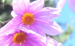 「皇帝」の名を冠するノッポなツリーダリアは 思いのほか可憐で みずいろの空がお似合い やさしいピンクの大きな花びら それぞれに風に吹かれて ひらひらひらり 風と光と 心と 一緒にゆれている 天に届きそうなその 高み いとこの四十九日の法要がありました。 まだ40代なのにとか夢に向かってるところだったのにとかやり切れない気持ちは静まってきたけれど なんだかずうっと 彼と遊んでいた小学生の自分といまの自分が一緒にいるみたいなヘンな感じ 空のダリアを見あげていたら ちょっと泣いてしまったわたしです。