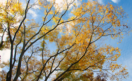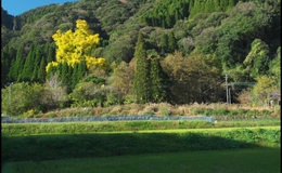 ご訪問頂きありがとうございます。 宮崎市高岡町にある去川の大イチョウを下見に行った時まだ青葉一色で、あと1週間 かなと予測して1週間後に行ったらまっ黄色になっていた。 早朝の陽光を浴びキラキラと眩いばかりに輝いていた。 葉付き、色合い申し分なく青空に映えて大変綺麗。 樹齢は800年はあると言われており樹高は40m以上で国の指定天然記念物。
