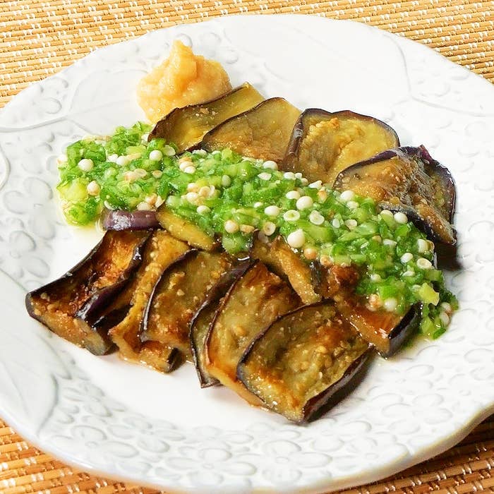 ⑤ 器に③のなすを盛り、 ④をかけておろししょうがを添えたら、完成!