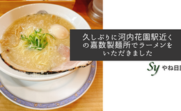 今週のお題「久しぶりに食べたもの」今年の1月以来、久しぶりに河内花園駅近くの嘉数製麺所でラーメンをいただいてきました。 河内花園駅の北側にあるパザパ花園を抜けた花園商店街の和(なごみ)横丁内にあるラーメン店です。 和(なごみ)横丁は風情があって良いですね。3回目の訪問ということで今度は鶏味噌のラーメンにしようと思っていましたが、左上に白湯塩の表示が。 白湯好きなので、ついついそちらを選んでしまいました。 To Instagram白湯塩の味玉トッピングにしました。 具は大判の香ばしそうなチャーシュ…
