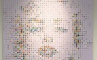 現代アートのTARTAROS(タルタロス)さんの作品です。観ての通りで誰かというのはどなたでもわかりますね(笑)!?今までも何度か作品を観せていただいたことがあります。引きで観るとマリリン・モンローですが、近づいてドット柄をよく観ると、驚くことに、丸くカッ…