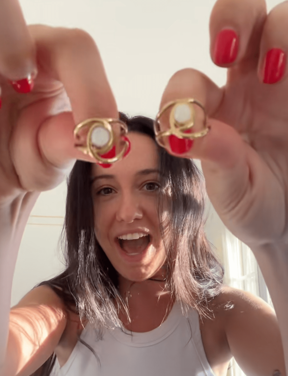 ベッカさんは、1年前にフランスに旅行した際、白い石をあしらったヴィンテージ調の小さな金の指輪を1つ買ったそうです。