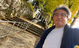 秋の紅葉巡りで伊豆・修善寺を訪問中のベコです。 花と自然のテーマパークである虹の郷で紅葉を満喫中。 もみじ林を巡りならやってきたのはこちら。 ベコ「ここも紅葉見頃だべこ!」 いや、ホント。 これはすごいですね! 斜面に続く石段にも紅葉がハラハラと落葉。 そして石段を上がると、そこには・・・ そう、ここは匠の村。 古き日本の民芸品などを作る家屋が並ぶエリアです。 しかし、今回はそれよりも紅葉がお目当て! この紅葉ロードをじっくり歩きましょう。 少し緑も残っていますが、オレンジや黄色がきれいですね〜…