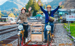 年甲斐もなくアニメ「君の名は」の聖地巡礼を含め飛騨古川散策を楽しんだが、本当はもう少しのんびりしたかったところなのだが14時30分から飛騨で人気のアクティビティを予約してあるので、急ぎ約45分先の神岡町を目指す!神岡町と言えばノーベル賞で有名になったニュートリノの巨大観測施設「スーパーカミオカンデ」のある山奥?だって一般道で1時間も走ればもう富山市中心街だからね。 その神岡町が誇る人気アクティビティこそが「レールマウンテンバイク Gattan Go!!」だ。過去何度かキャンプ帰りに娘たちとトライ…