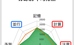◆本日のレポート◆ ~11月レポート~ またまたグラフが歪になりましたね~。 前月欠けてた「計算力」と「注意力」は持ち直しましたが 左側が見事に欠けてしまった。 「並行処理力」と「反射神経」の落ち込みには訳があります。 また、新しいゲームが加わって、それが足引っ張ってんだな。 「反射神経」なんてピアノ演奏なのよ。 音符が出て来るので反射的に鍵盤を叩くんだけれど、知らない曲なんて弾けないよ。 まぁ、何回か聴けばわかるようになるけど、楽譜初見じゃ無理だな。 脳内年齢は30代に戻ってしまった。 仕方な…