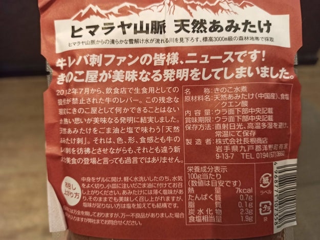 山岳地帯で採取されたキノコ「天然あみたけ」