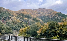 ■メイン写真小倉山へ向かう遊歩道にて、イロハモミジの紅葉 ■今回のコース清滝バス停→(金鈴峡)→落合橋→六丁峠→小倉山→嵐山公園→嵯峨嵐山駅 今月の「らくらく山歩の会」は、紅葉シーズンを狙って、清滝から小倉山に登り、嵐山へ抜けるコースを選定した。 京都バスで、清滝へ。清滝の渡猿橋のたもとから、清滝川の流れを見下ろす。ここのカエデは少し焼けてしまっていて、赤色の発色はイマイチかな。 遊歩道に下りる階段は、いろんな色の敷きモミジ。 清流と紅葉、よく似合う。 金鈴峡の流れは、たまに変化して激流になって…