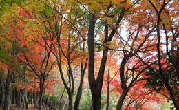 26日、JR武田尾…親水公園…桜の園…大峰山…安倉山…つつじが丘展望所…城ケ丘…もみじの道…親水公園…JR武田尾 約8km JR福知山線廃線敷のトンネル抜けて親水広場へ 落ち葉の絨毯の登山道 桜の園 赤い紅葉とムクロジの黄葉 つつじが丘展望所から見渡す北摂、丹波、播磨の山々 中央に新名神宝塚北SA近くの大岩岳・羽束山から遠くに千が峰・雪彦山などなじみの山のぼりの話に会話が弾んだ展望休憩 赤松展望所 ウリハダカエデの紅葉 城ケ丘からモミジの道を下ります 頭上も足元も紅葉の 「もみじの道」 優しいピ…