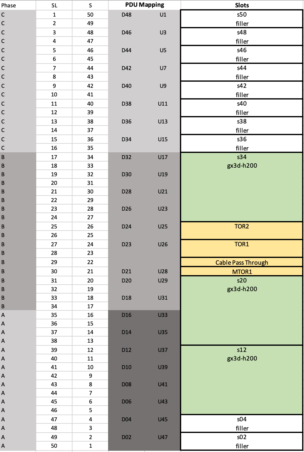 Sample H200 server rack elevation