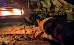 MIO39/40泊目 寒くなりました、朝晩は0℃という気温 こうなると、完全におこもりキャンプに 暗くなってからは、薪ストーブつけてテント内でぬくぬく😁 猫様もご来店🐱