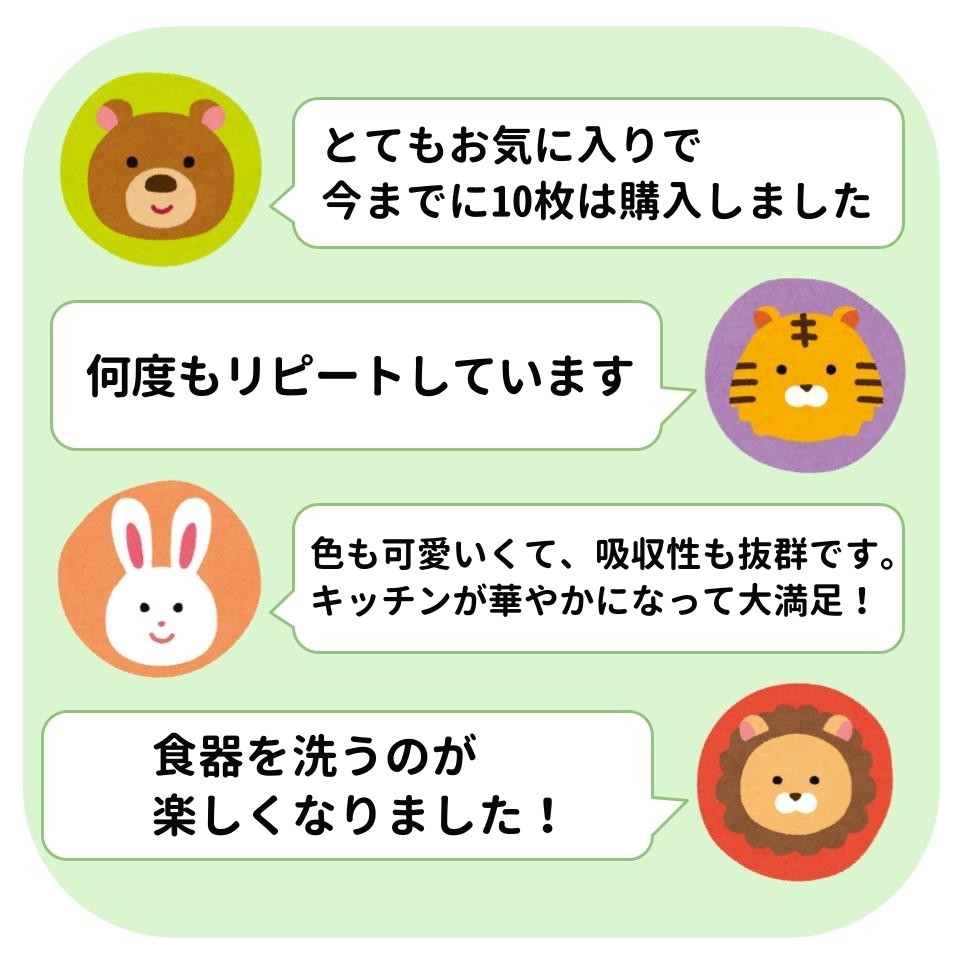 シンク横のちょい置きにぴったり!洗った食器の水滴を、ぐんぐん吸ってくれます。