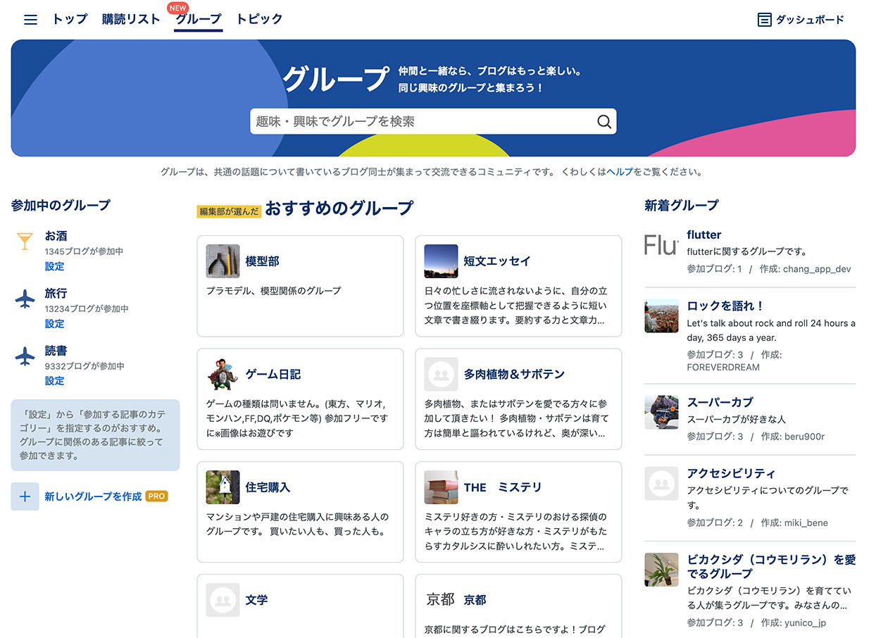 はてなブログでは、ブロガー同士がつながるコミュニティとして「グループ」「お題」を用意しています。