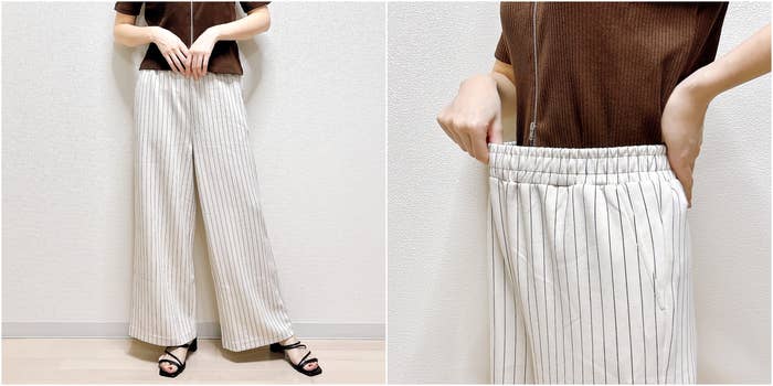 きれい目にはける、ストライプ柄のイージーパンツです。