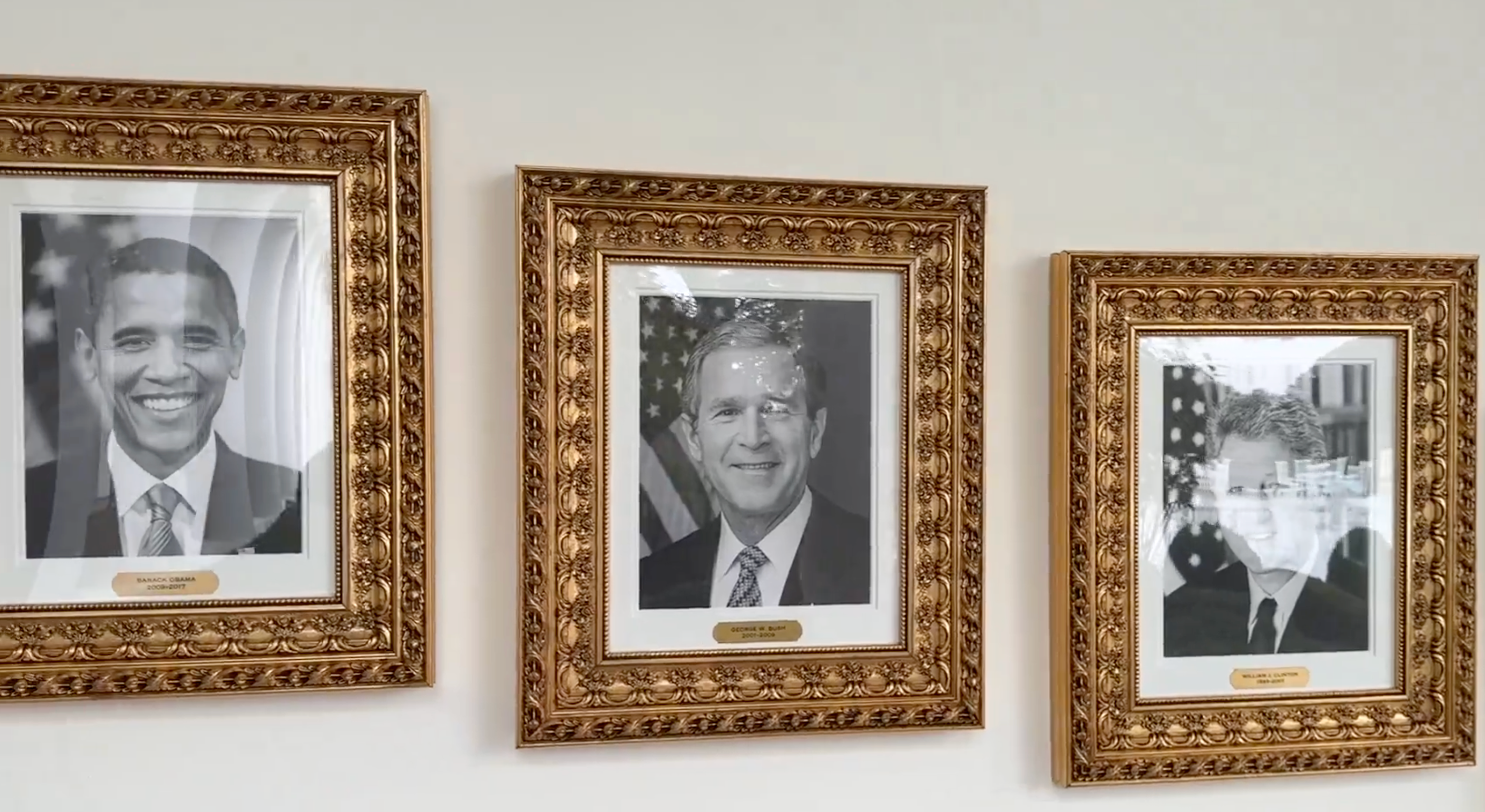 民主党出身のビル・クリントン元大統領や、バラク・オバマ元大統領は通常どおりの肖像画だ。