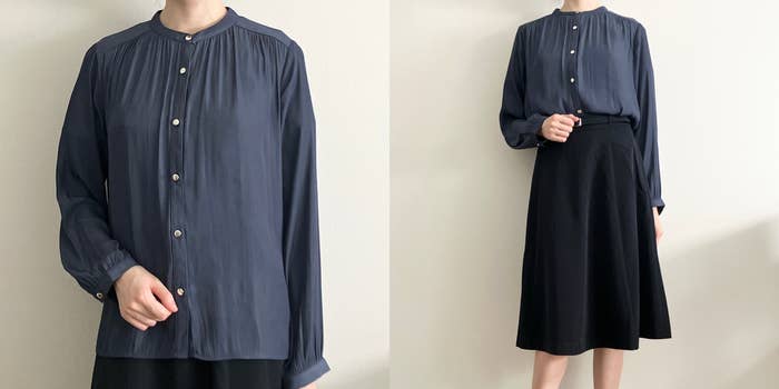 オンオフ着られるトップスなら、ユニクロの「レーヨンブラウス」もおすすめです。