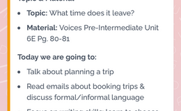 11/14(金)の授業は、教科書では無く、プリントを使っての授業でした。 11/14(金)授業計画(事前に学校アプリを確認し予習します。) **Friday 14 November Low A – 313** In Class –(授業内容) Topic & Material(トピック & 教材) Topic: What time does it leave? → 「それは何時に出発しますか?」 Material: Voices Pre-Intermediate Unit 6E Pg. 80–8…