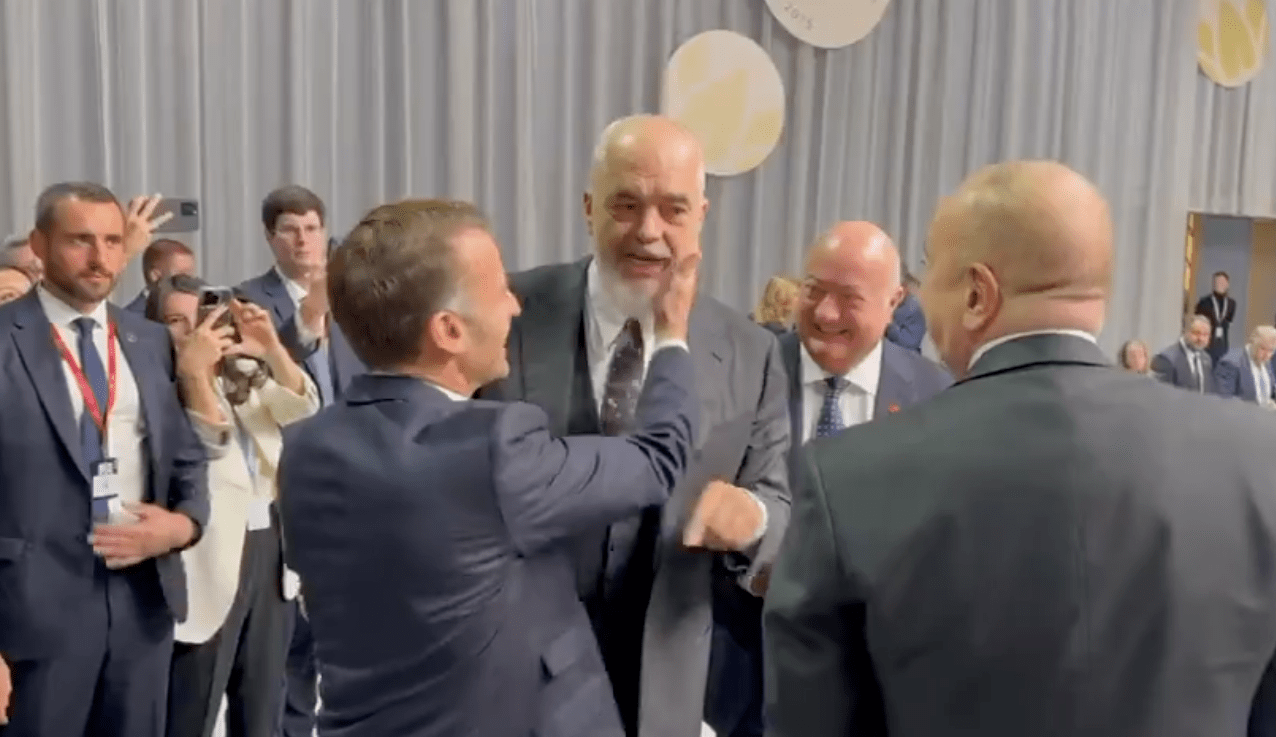 映像では、3人が談笑する様子が映っており、ラマ氏がマクロン氏に向かってこう言った。