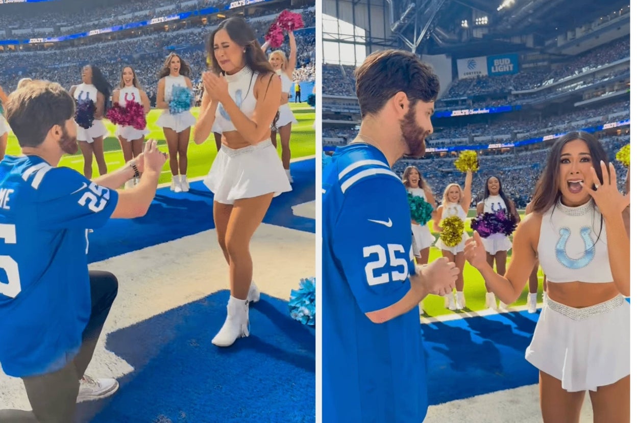 NFLのフィールド上で、チアリーダーが公開プロポーズを受けた動画が話題です。「うつくしすぎて泣いた」と感動と祝福の声が集まっています。