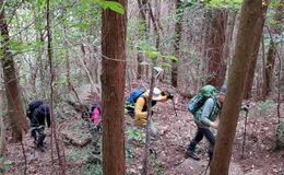 連休で高速は大渋滞という予測をしておったから、深夜に腹のパウチを交換してからゆっくり寝て、起きてリアルタイムの道路状況を確認した。 こういう日は直前まで猿の群れの動向を監視して、行き先は考えるに限る。 東名・中央・関越・東北は怪しいから、昨日は常磐道で福島に向かった。 昼過ぎに予定する登山口に到着して、紅葉の山々を歩くことにした。 のっけから急登の古い階段地獄で、血圧が高めな日が続いていたので用心して休み休み登って行ったが、それでも里山でも 舐めたらあかんぜよ! という大汗をかいた。 山頂直下か…