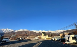 昨晩は少し早めのお開きで、23:00頃にはベッドへ。 ただ、寒さが半端なかったので、FFヒーターは入れっぱなしで室温21℃設定。 車外は氷点下になりましたが、車内はぬくぬくで朝までぐっすりでした。 6:30頃起きると、外は寒かったですが、空は雲一つない快晴で、 北アルプスの白馬三山が綺麗に見えていました。 この景色は何度見ても感動です! 霜が降りて、激寒! 北アルプスがとっても綺麗! 白馬のジャンプ台も見えてます。 いや~、この景色ずっと見ていても空きませんねぇ~。 昨日お風呂に入っていないので…