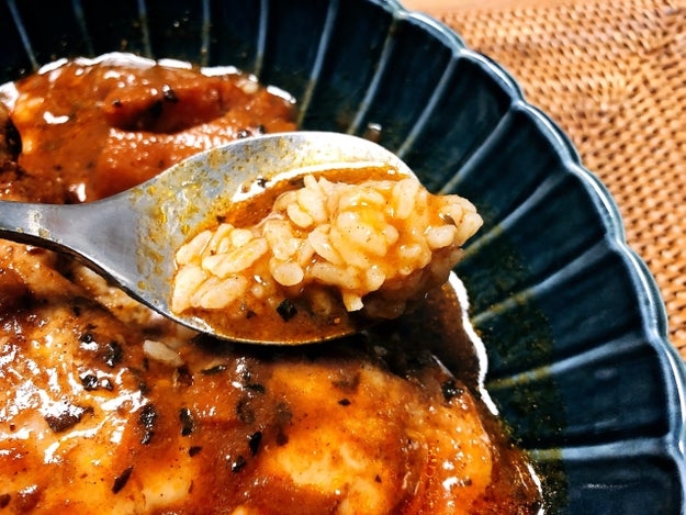 ご飯の上にかけたら完成!チキンの大きさが尋常じゃない!