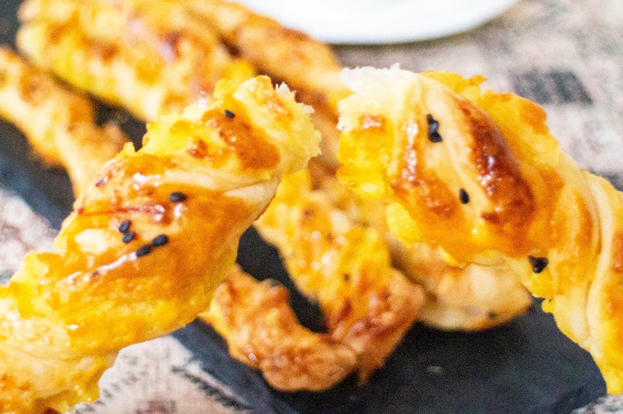 ひねって焼くだけなのに、おしゃれで映える仕上がりだから、おもてなしにもぴったり。黒ごまの香ばしさがアクセントになって、つまみ食いが止まらないおいしさです♡ 外サク中ホクの食感バランスが最高で、子どもも大人も夢中になること間違いなし!オーブンから出した瞬間の香りが幸せすぎる…♡ ぜひ、作ってみてくださいね♪