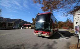 さぁ、今旅一番の目的、長電バスの2階建てエアロキングに乗車ですもう帰る人がいて数人並んでいるのかと思いきや、バスの周りには誰もいません 後方からも撮影、周囲に誰もいないことが判ります、そう、つまり私が先頭ということ湯田中からのバスは2分ほど遅れて10:00くらいに到着、このスノーモンキーバスは10:20発なので20分前と言うことになります バスは出発5分ほど前に運転手が現れて乗車可能となりました、そのタイミングくらいで外国人女性が2名やってきまして私を含めて3名で2階席の一番前を占拠、そしてその…