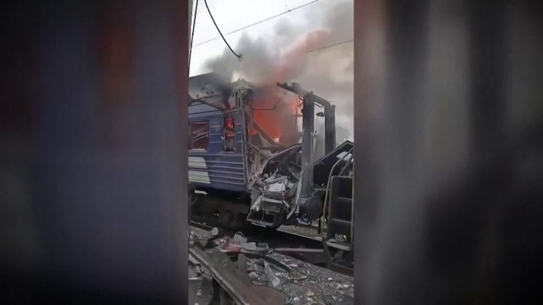 Both Zelenskyy and local Gov. Oleh Hryhorov posted what they said were photos from the scene showing a passenger carriage on fire.