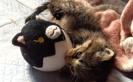 遊べるようになったよ しょげしょげしてた子猫に、ちっさなおもちゃをあげたよ。テニスボールより少し小さめのヤツ。なんか、ころん、と向きを変えるのが楽しいみたいで、死んだ兄弟の事思い出すのかな、なんて思ったりしました。 うまうまうま とろとろの離乳食。食べてくれます、嬉しいです。 ねむねむねむ。。。 遊んで食べてちっちして。疲れたら眠る。それが自然。 そうこうしてるうちに、避難所の庭先にちぃっさいのが顔を出すようになりました。 生後二か月越えた、かな、くらいの。歩きようがしっかりして、子猫らしい子猫…