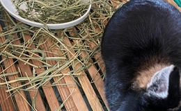 こんにちは。 11月第三日曜の「週すば」へようこそ。 すばちゃんの最近のマイブームはずばり、「牧草を散らかす」。。。(笑) 北の部屋から移動して南のリビングで一緒に過ごすようになって、「かまってかまって」アピールでカジカジタイムに付き合わされるかな、と思っていたのですが、カジカジタイムはそれほどでもなく、代わりに、楕円形の牧草皿の中身を散らかすといういたずらを考え出したすばるです(笑) とある日。 私が「だめじゃんこんなに散らかして~」と、スノコの上に散らかった牧草をまとめてもう一度お皿に戻そう…