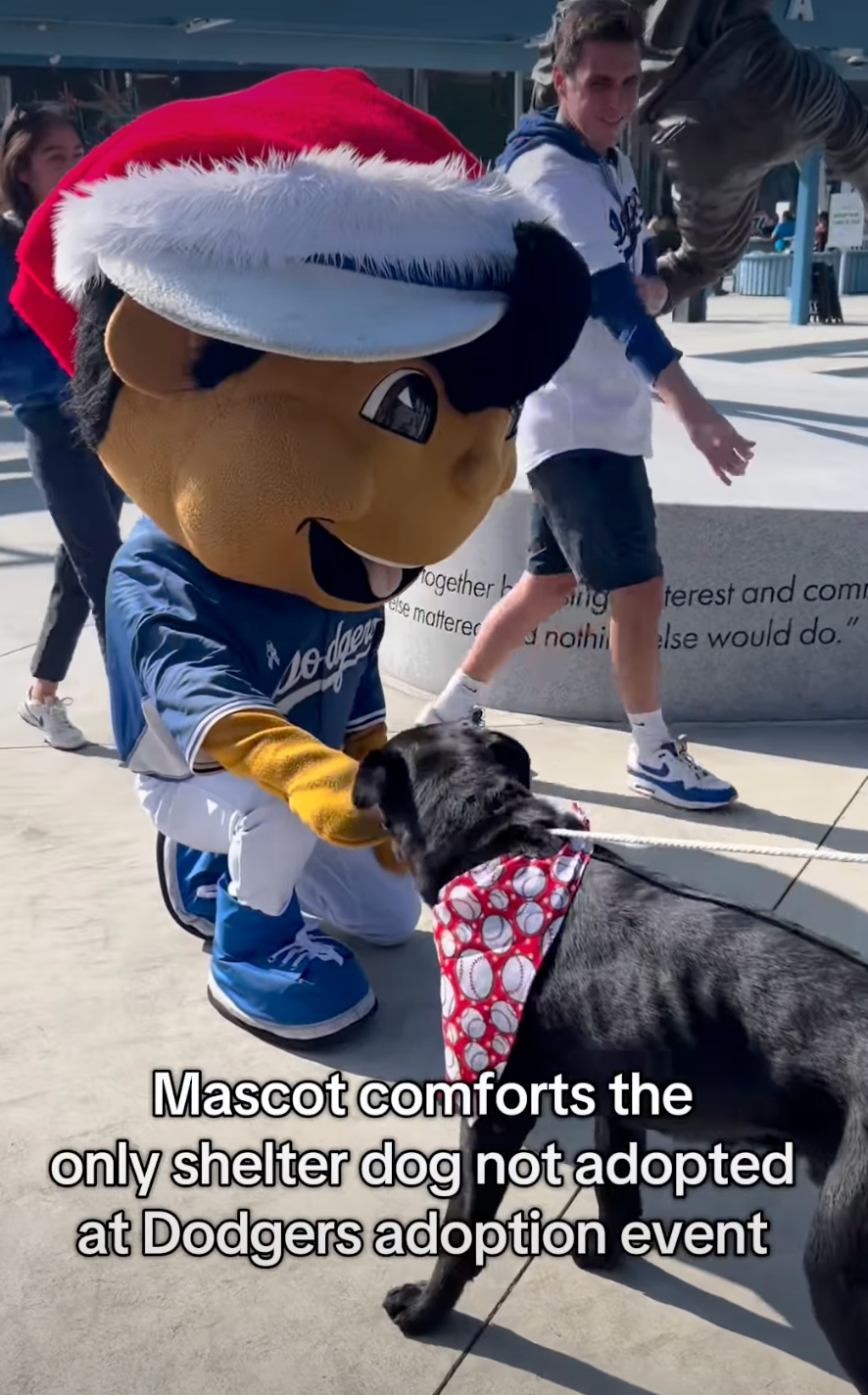 譲渡会で里親が見つからなかった黒いラブラドール・レトリバーが話題です。譲渡会で「ドジャース」のマスコットと交流する動画で注目が集まり……。