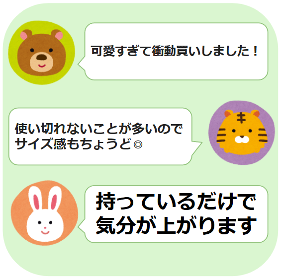 公式サイトの商品レビューには「可愛すぎて衝動買いしました!」「使い切れないことが多いのでサイズ感もちょうど◎」「持っているだけで気分が上がります」など、高評価の声が寄せられていました。