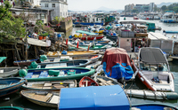 香港の漁港で撮った写真。奥の船はどうやって出すんだろう