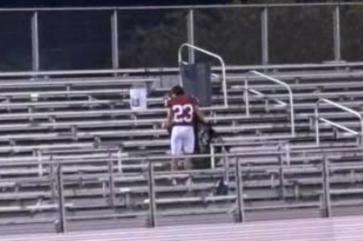 高校のアメフトの試合後に撮影された1枚の写真に、称賛の声が寄せられています。そこには、観客たちが帰った会場に残り、なにやら作業をする選手が写っていました。